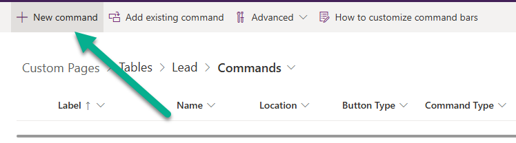 OK so lets assume you added your custom page to all of your model-driven apps. You can still save time by editing the command bar once. To do this, go to a solution, then the table you want to edit it for, then commands and then new command. We are now editing the table command rather than the command for a specific app.