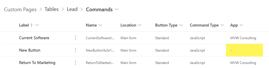 In a previous post on Custom Pages, I showed how you can add a button to the command bar (ribbon) on one of your model-driven apps. What if you want to include it in all apps that have the specified table (entity type) included in it? Is it possible? Well the quick answer is yes, it is possible, BUT with quite a few quirks and limitations. I wanted to share details so if you are wondering the same you have an idea of when to use it and when to avoid this approach.