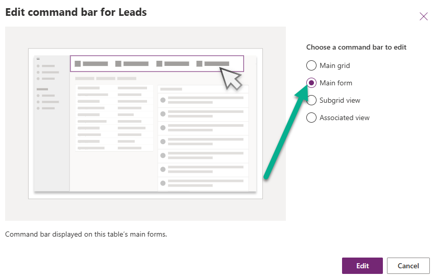 Editing commands on the commands page from the Solutions or Tables areas in Power Apps (make.powerapps.com) doesn’t have the capability to set