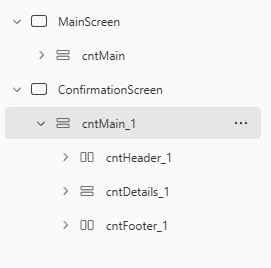 Doing that will automatically add in the screen for you. If you want the two screens to look similar, just click on the three nots next to the main screen container and copy it, then paste it directly in to your second screen. That gives you the exact same layout and other settings, then you can just delete and edit the components that aren’t needed.