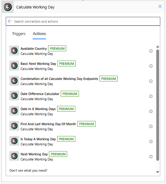 First, you can find the connector by searching for Calculate Working Day when creating a flow in Power Automate. There are no Triggers but quite a few Actions which you can read about on the connector page. There are some interesting options that you could use for a variety of things. I went for the Is Today A Working Day option.