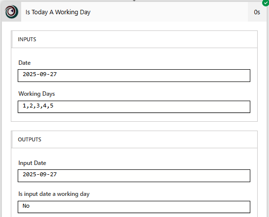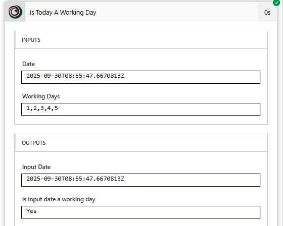 That’s it, pretty simple yet could be very effective and save you from writing a lot of extra expressions to figure this out for yourself. The connector does have the ability to check for bank holidays (national holidays) but currently only for the UK which makes it a little harder for any global international organisations.
