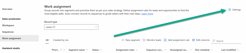 This is found in the Sales Hub app in the Sales Insights settings area. Click on Work Assignment then the Settings button on the top right.