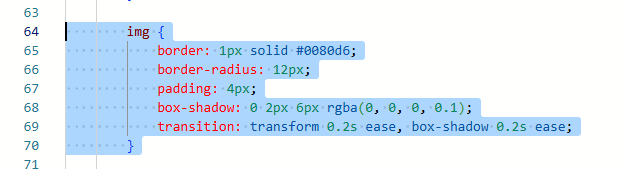 Here we can see that all I’ve done is updated the img class which should already be in the CSS section of your HTML. You can use what I have shared below and just adjust the colour to suit your own requirements.