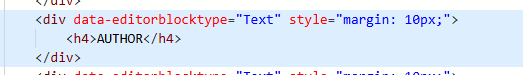 Find where you have added the AUTHOR text and put <h4> right before it and </h4> right after it. This tells the content block that we want the text between the h4 tags to be styled accordingly.