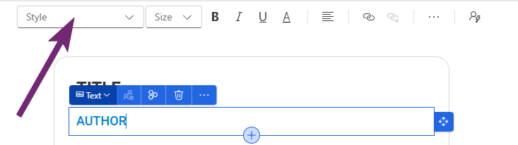 Next I want to set the author styling. Notice the style option isn’t there, that’s because I have added a different style to this text. I am going to use heading 4.