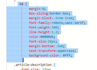 Within the style section of the HTML, if you already have h4, adjust it. Otherwise, add it in like you see below and just adjust accordingly. I always want this text to be uppercase, even if the person creating the email puts it as lowercase. Using text-transform uppercase will do that for us.
