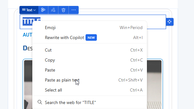 One last tip, when you are adding in the information to the content card, if you have copied stuff from somewhere else (word, a website etc), be sure to right click and paste as plain text. If you simply paste, you could end up pasting in all kinds of other formatting which will break your beautiful CSS you worked so hard on!