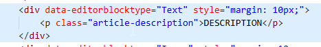 Now I could just leave it as the main p class in the CSS part of the HTML, but I might want to use the ‘real’ paragraph styling later on, so in this one I am adding class=”article-description” in the <p> tag like you see below.