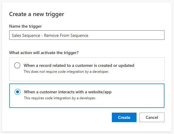 If you use Sales Sequences AND Customer Insights – Journeys you may have noticed another post from me about how to add someone to a Sales Sequence when someone is going through a Journey. That could be a massive help! But what about needing to take someone and disconnect from Sales Sequences? Maybe you have Leads or Contacts going through a Journey with the end goal of creating or winning an Opportunity, or getting them to fill out a form. In this post we will show creating a custom trigger that can be used to remove someone from a sequence within a Journey.