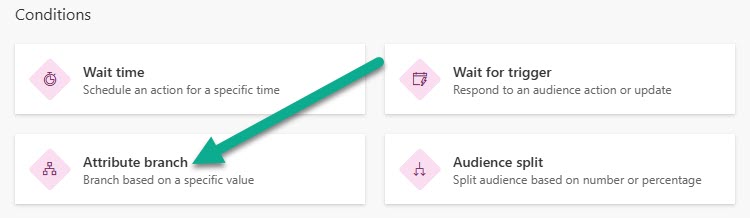 OK once you have your form up and running, make sure you have the logical name and the possible values that you want to check on. I will use two different examples within a journey that fires using the Marketing form submitted trigger. I can use the journey to send an email to the Contact/Lead and do other things, so rather than adding the condition on the trigger itself, I might want to add an attribute branch condition.