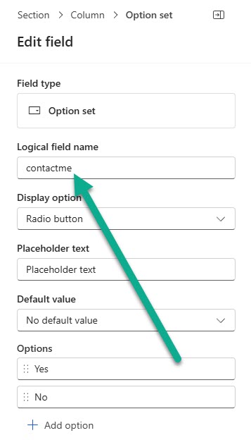 If I open the Field Submission record, I can see the logical name of the field, but then the Value stored is the important bit. Rather than using the word No in my journey attribute check, I need to use the value of 2 that is associated with that option. You need to confirm what values were assigned to your options to be sure you are using the correct values in your journey checks.
