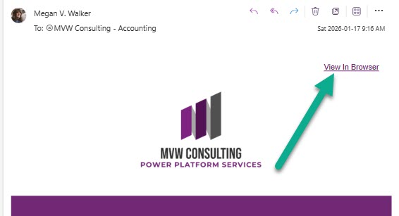 I recently had a question via my blog that asked about the View In Browser link you can add to your emails in Customer Insights – Journeys. Specifically, when someone clicks that from the email and they are in fact ‘viewing in browser’, can it be hidden? Otherwise it is a bit circular, view in browser to view in browser and so on. There is no way out of the box so I figured I would see if it was possible. Spoiler, it is BUT with limitations. Read on to find out if you can hide the view in browser link when viewing in browser.