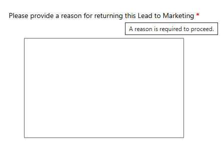 "<center>Please provide a reason for returning this Lead to Marketing" & If(IsBlank(txtReason.Value), "<font color=red><b> *</b></font>", "")